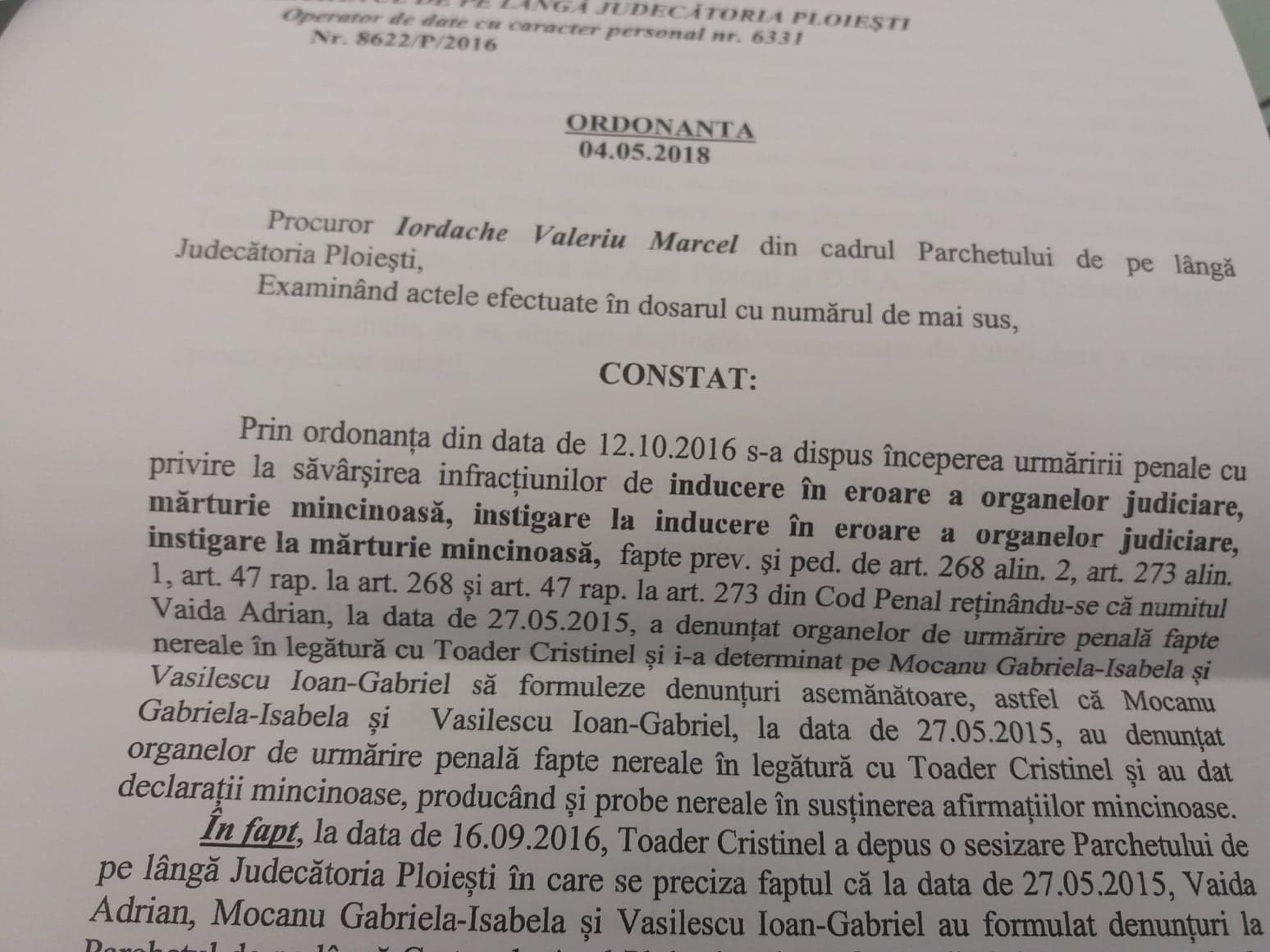- In dosarul penal intocmit de procurorul Negulescu Mircea fostului director Toader Cristinel pe baza denunturilor mincinoase ale lui Adrian Vaida, managerul model al Politiei Locale Ploiesti s-a incurcat in propiile lui minciuni. In acest sens, la nivelul Parchetului General exista un dosar penal pe numele lui Adrian Vaida, Negulescu Mircea, Mocanu Gabriela Isabela, etc in care acestia sunt urmariti penal pentru inducerea in eroare a organelor de cercetare penala si pentru marturie mincinoasa.