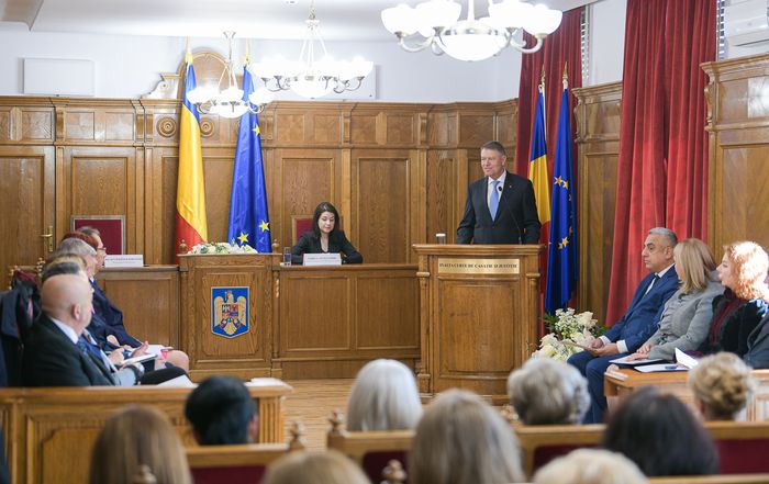 Presedinta Inaltei Curti de Casatie si Justitie Corina Corbu le-a ajuns din urma pe predecesoarele sale Livia Stanciu si Cristina Tarcea. Nu ne referim (slava Domnului!) la modul in care intelege sa conduca instanta suprema, deocamdata, ci la faptul ca sefa ICCJ Corina Corbu a facut prima ei poza alaturi de marele nostru conducator Klaus Iohannis. S-a intamplat in urma cu doua zile, cand Iohannis a participat la prezentarea raportului de activitate al ICCJ pe 2019. Raportul nu a aparut inca pe site-ul Inaltei Curti (ca sa aflam ce a facut instanta suprema anul trecut), ci doar alocutiunea Corinei Corbu. In schimb, pe site-ul Administratiei Prezidentiale au fost postate o serie de poze din timpul descalecarii lui Iohannis de la Inalta Curte. Asa ca mai jos il puteti vedea pe Werner cum le vorbeste mandru-nevoie mare judecatorilor de la ICCJ, in frunte cu presedinta Corina Corbu si vicepresedintii Iulian Dragomir si Gabriela Bogasiu, dar si proaspatului Procurorul General Gabriela Scutea.