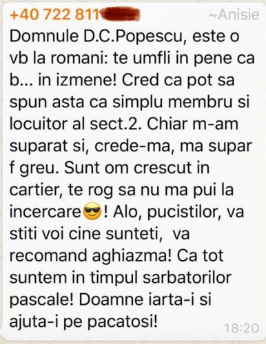 Și parcă pentru a ne convinge că, totuși, ”ceva este putred în Guvernul Orban”, mai ales la Ministerul Educației, comisarul șef Adrian Anisie a fost până în luna martie a anului 2019 șeful Structurii Teritoriale București din cadrul Direcției Generale Anticorupție! Că îți și vine să te gândești deja cu liniște la modul cum își audia acesta suspecții și conducea lupta anticorupție din Capitală, dacă doar pentru că a apărut în presă un ”like” al soției îl amenință cu bătaia pe viceprimarul tot liberal al Sectorului 2! Și pentru că probabil a lipsit la acea lecție de la ”școala vieții” din cartier cu care se împăunează atât, pensionarul MAI ar trebuie să se intereseze totuși că ”nimeni nu este singur pe stradă”, mai ales la acest nivel… Sau mai degrabă că dacă ministrul Monica Anisie tot amenință în stânga și în dreapta cu dosare penale, deocamdată cel mai în măsură să depună pe bune o primă plângere penală este chiar liderul liberal Dan Cristian Popescu, cel amenințat printr-un mesaj personal explicit, care a ajuns deja în posesia organelor de anchetă. Și uite cum îl mai înțelegi și Marcel Vela când se spune că în vreme cu ceva vreme ministrul de Interne se ascundea pe unde putea de colega de la Educație, fiind probabil avertizat de propriile structuri informative să nu deschidă cumva ”Cutia Pandorei” reîntoarcerii în minister a rezerviștilor…