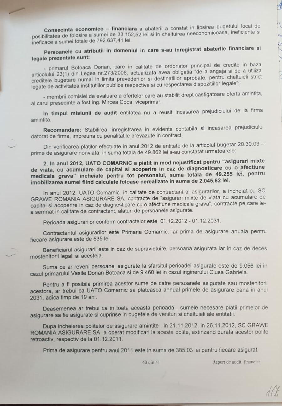 Toate aceste fapte infractionale sunt consemnate si in Raportul Curtii de Conturi dar, Dorian Botoaca beneficiaza de imunitatea oferita de IPJ Prahova si procurorii statului paralel, pentru motivele sus mentionate (cati colegi de partid a dat pe „topogan” acest candidat cinstit vom afla in acest serial).