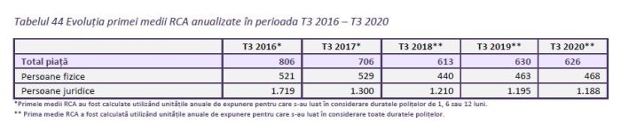 • Prima medie RCA (populație și companii) este de 626 de lei.