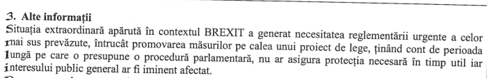 ii) Motivarea în scris a ordonanței de urgență, și a ,,urgenței” îl ia efectiv de prost pe ministrul de finanțe care și-a asumat, Alexandru Nazare, dar și pe premier. Nicu Marcu vrea să ia până la un miliard de lei de la populație pe motiv de (?!?) Brexit: