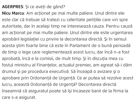 Dar iată ce zice Nicu Marcu în interviul Agerpres, ascunzând cauza reală, respectiv că el personal nu spraveghează în mod real piața asigurărilor.