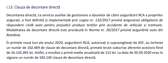 Dealtfel, chiar ASF constată că  acesta nu este un serviciu cerut de către piață, în propriul raport, fiind accesată clauza doar în cazul a 1,7% din totalul celor peste 9 milioane de polițe RCA încheiate. 98,3% din cei care încheie contracte RCA obligatorii, nu consideră utilă clauza.