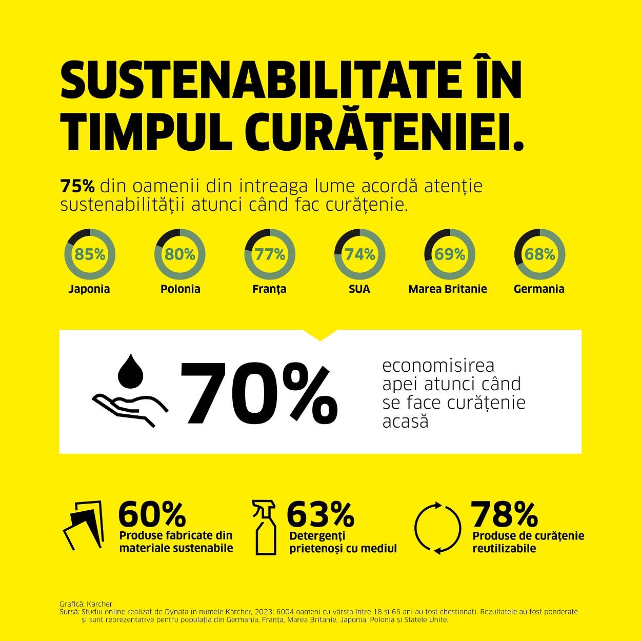 Studiu Kärcher 2023: diferențe globale în obiceiurile de curățenie și importanța acordată sustenabilității