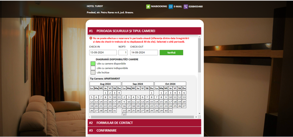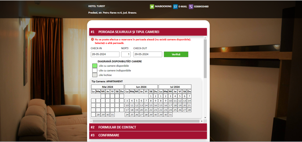 Am luat la rând fiecare unitate de cazare, navigarea e facilă, se deschide ușor oferta îți alegi data și… surpriză! Toate locurile de cazare sunt ocupate și nu din seara asta ci pe următoarele două luni!