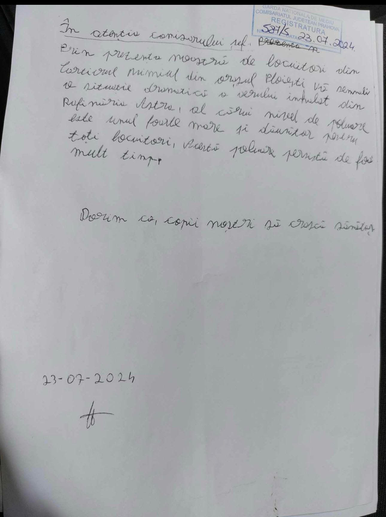Ieri dimineață, la Garda de Mediu din Ploiești si la Rafinaria Astra, a avut loc un protest în care au participat zeci de locuitori din cartierul Mimiu. Aceștia s-au plâns că nu mai pot sta în case din cauza mirosului neplăcut de produse petroliere provenit de la platforma fostei rafinării Astra. Locuitorii au afirmat că au depus numeroase reclamații, fără ca vreo măsură să fie luată în acest sens. Mai mult, sugerează că în incinta respectivei platforme se desfășoară activități ilegale, cum ar fi spălarea cisternele și a vagoanelor de produs petrolier, precum și depozitarea unor cantități semnificative de combustibili. Compania implicată, M.T.K Auto Sport SRL, pare a fi protejată de autorități.